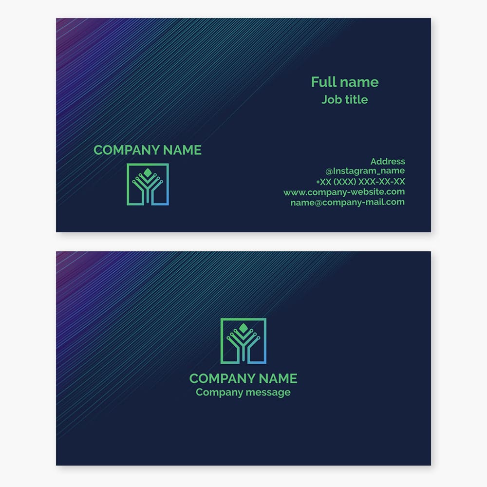 Imagine a striking dark blue card featuring an eye-catching design of a futuristic robot that captures attention instantly. Your company name is prominently displayed in a vibrant blue, while your full name and job title are elegantly presented in crisp white. This combination creates a visually appealing and professional look that stands out