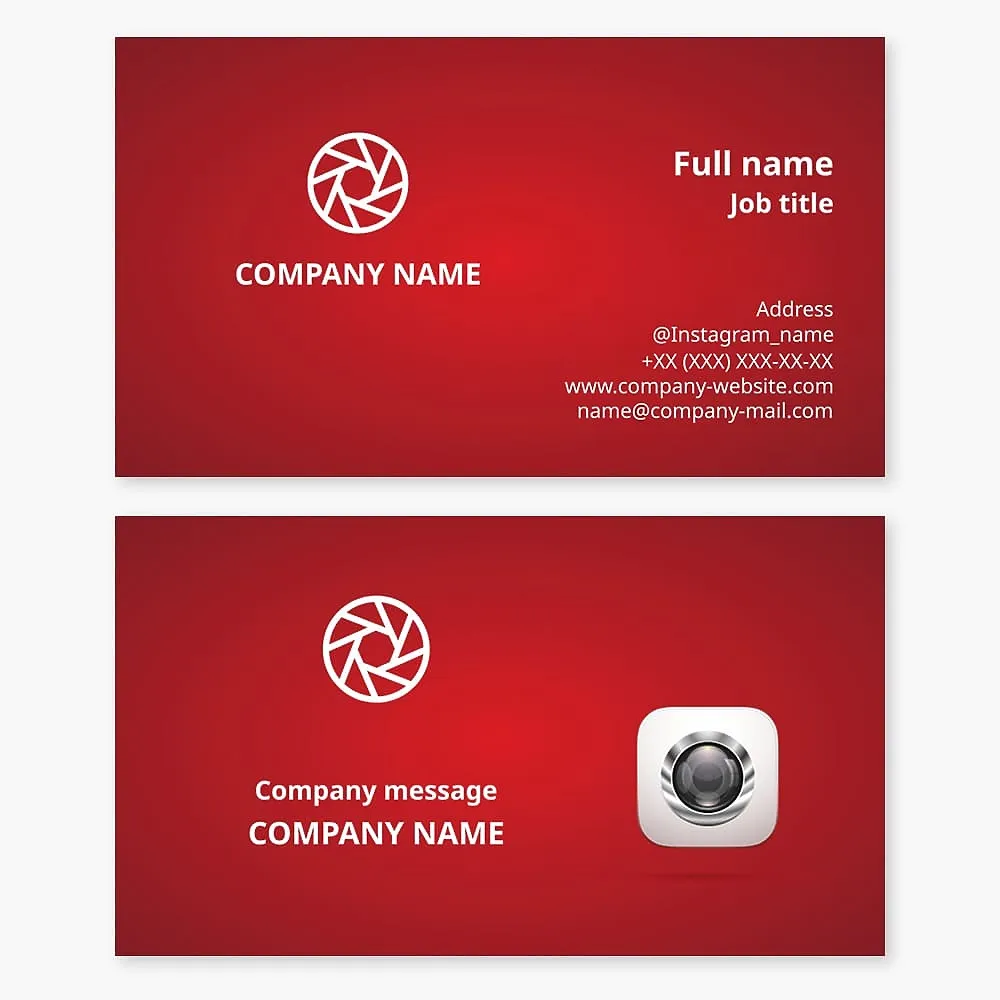 Business card template with camera shutter. Photographer, photo studio, photography training