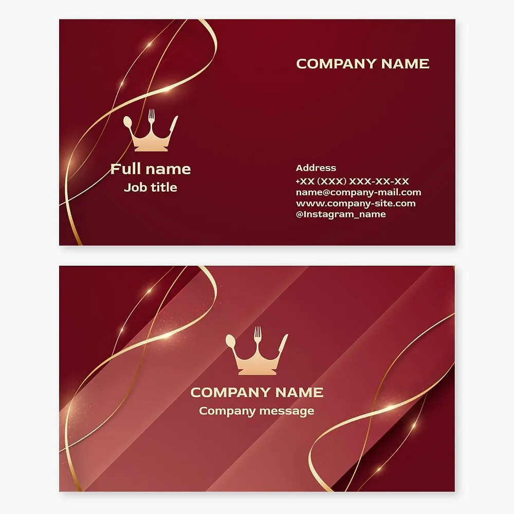 Business card template with the Royal Crown restaurant logo. Spoon, fork, and knife. Upscale restaurant.