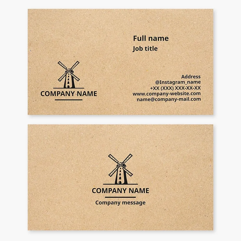 Windmill Business Card Template. Bakery, grain processing, grain storage, flour mill.