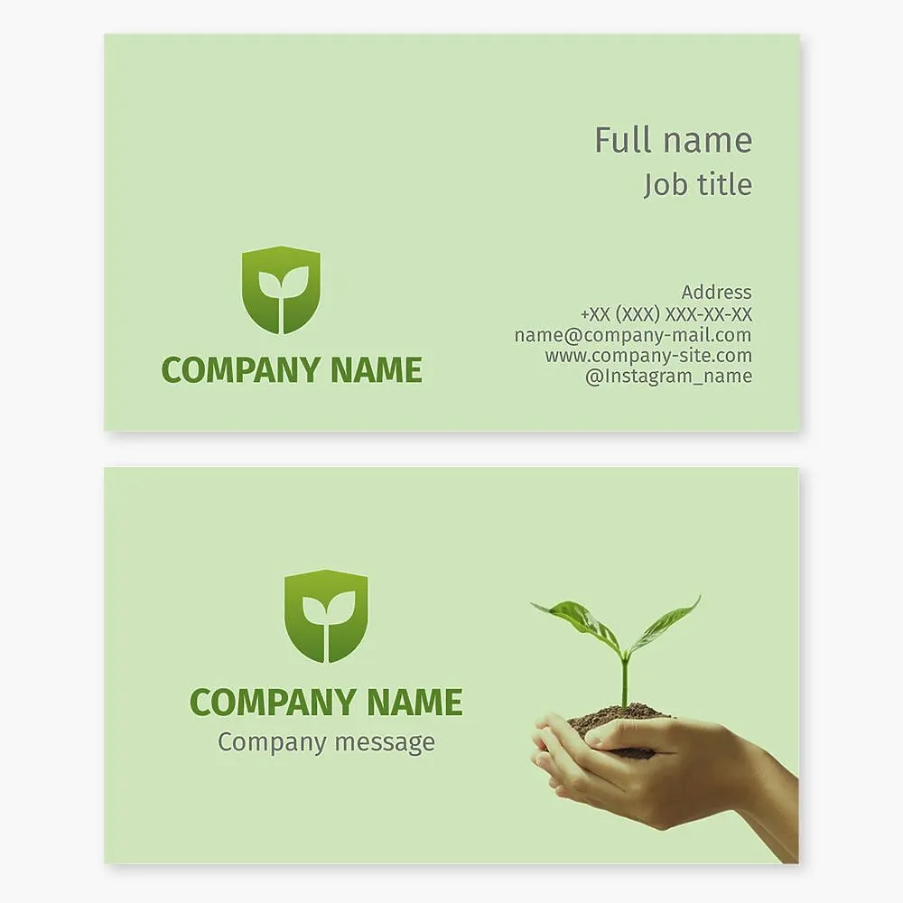 Eco-gardening business card template. Plant protection. Agricultural company.