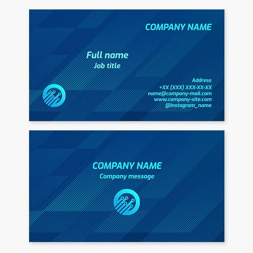 Business card template. Electronic devices and components, gadgets, and electronic circuit boards. Letter O.