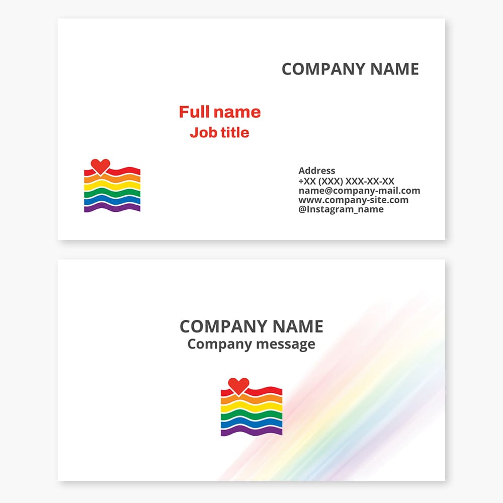 Business card template. Rainbow flag and heart. A symbol of love, acceptance, and solidarity with the LGBTQ community.