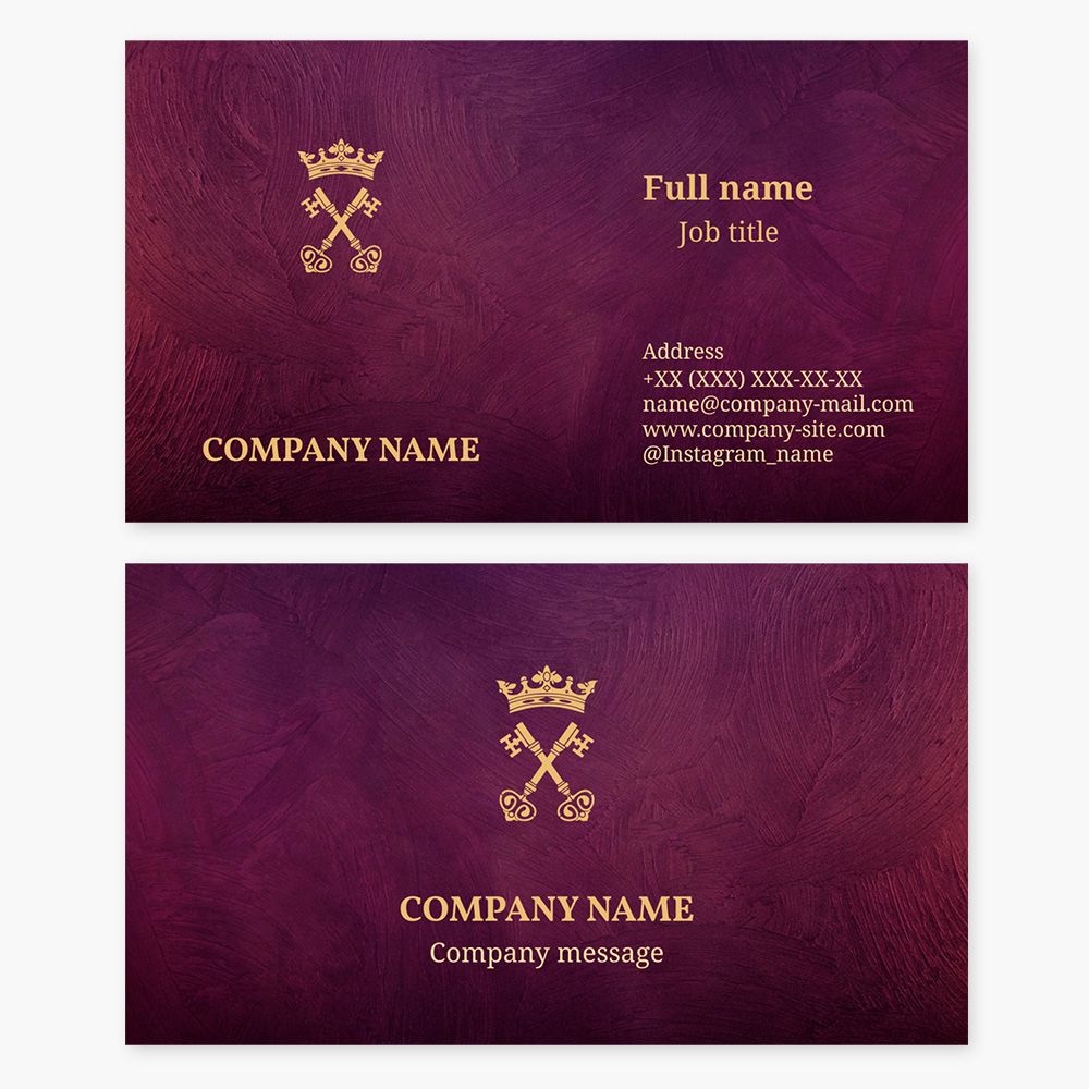 Keys and Crown Logo | Real Estate | Purple Brush Texture Business Card Template