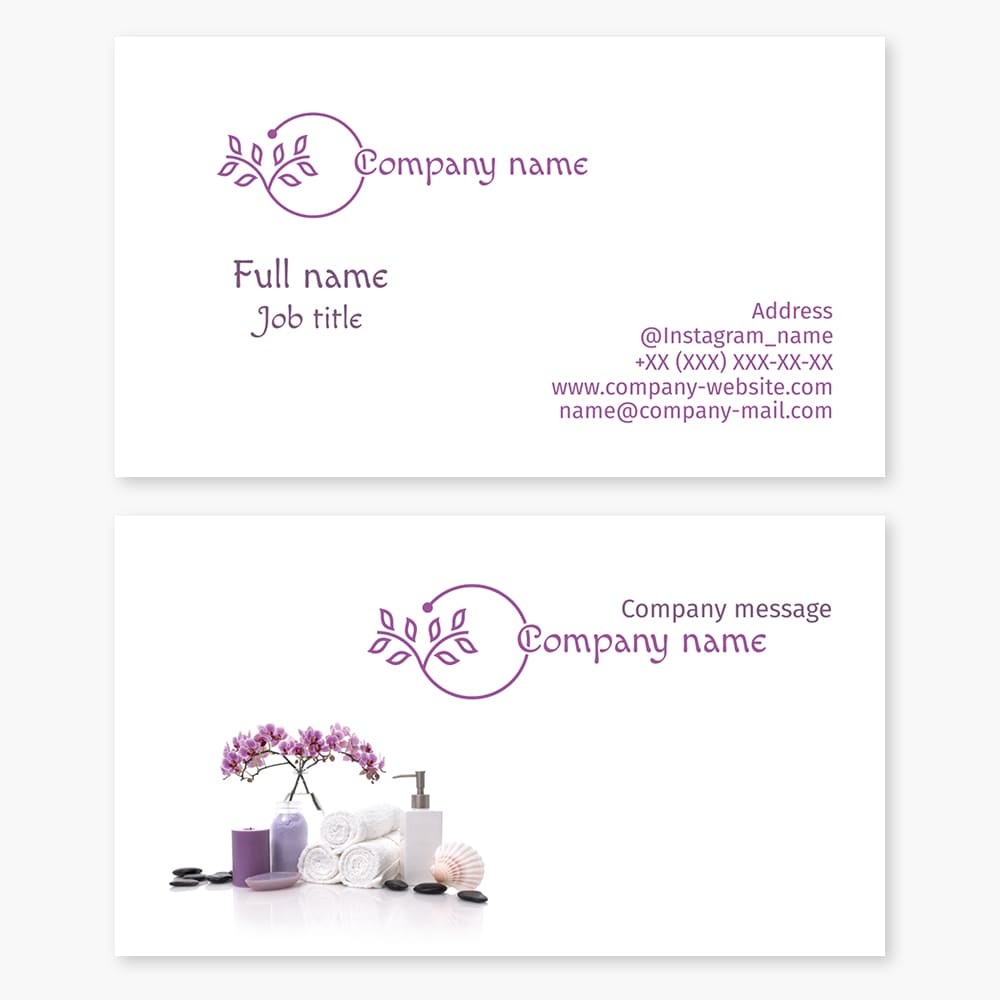 Spa business card template. Girl's face, orchid, and stones. | ID200612
