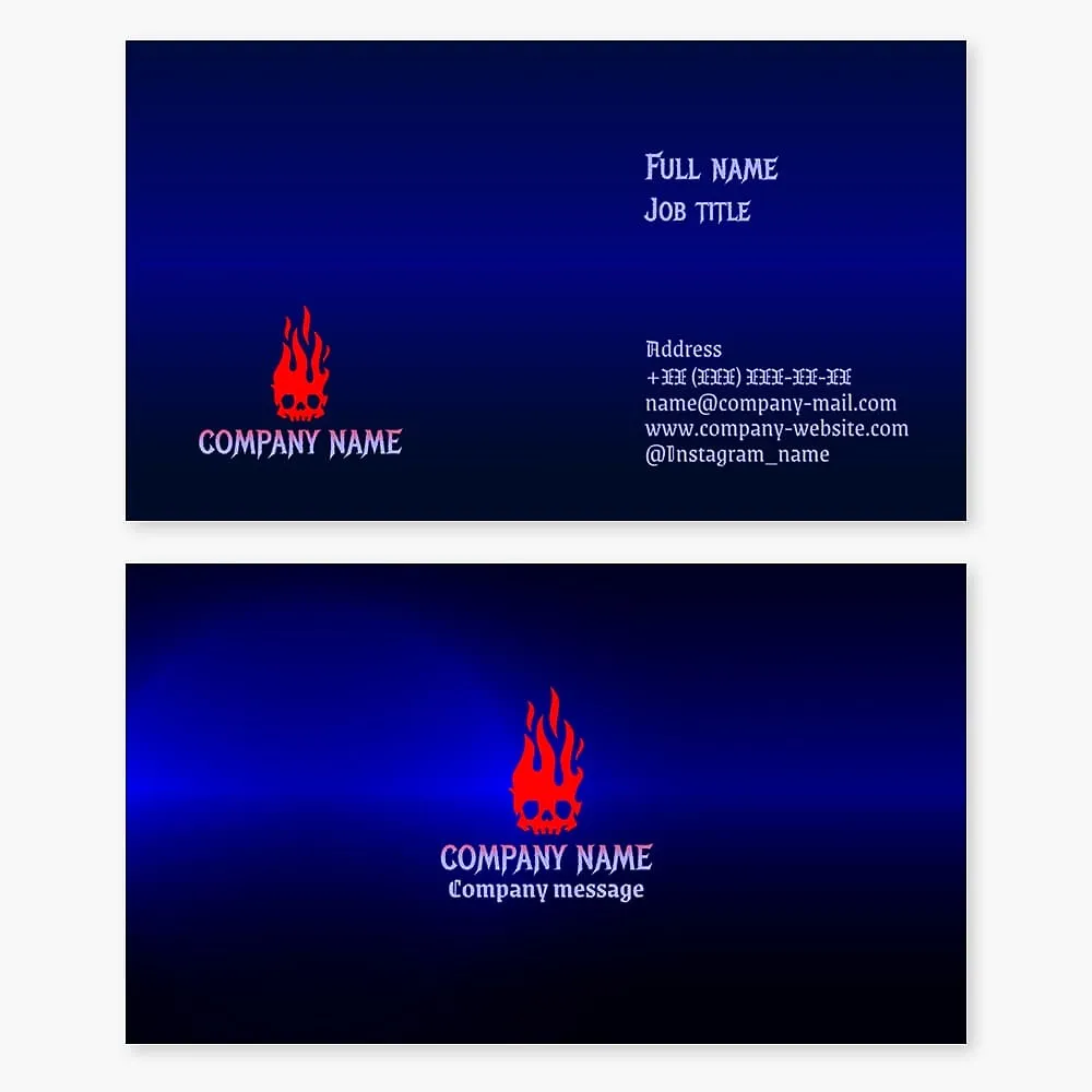 Skull and Flames business card template. Abstract. Tattoo parlor. | ID200801