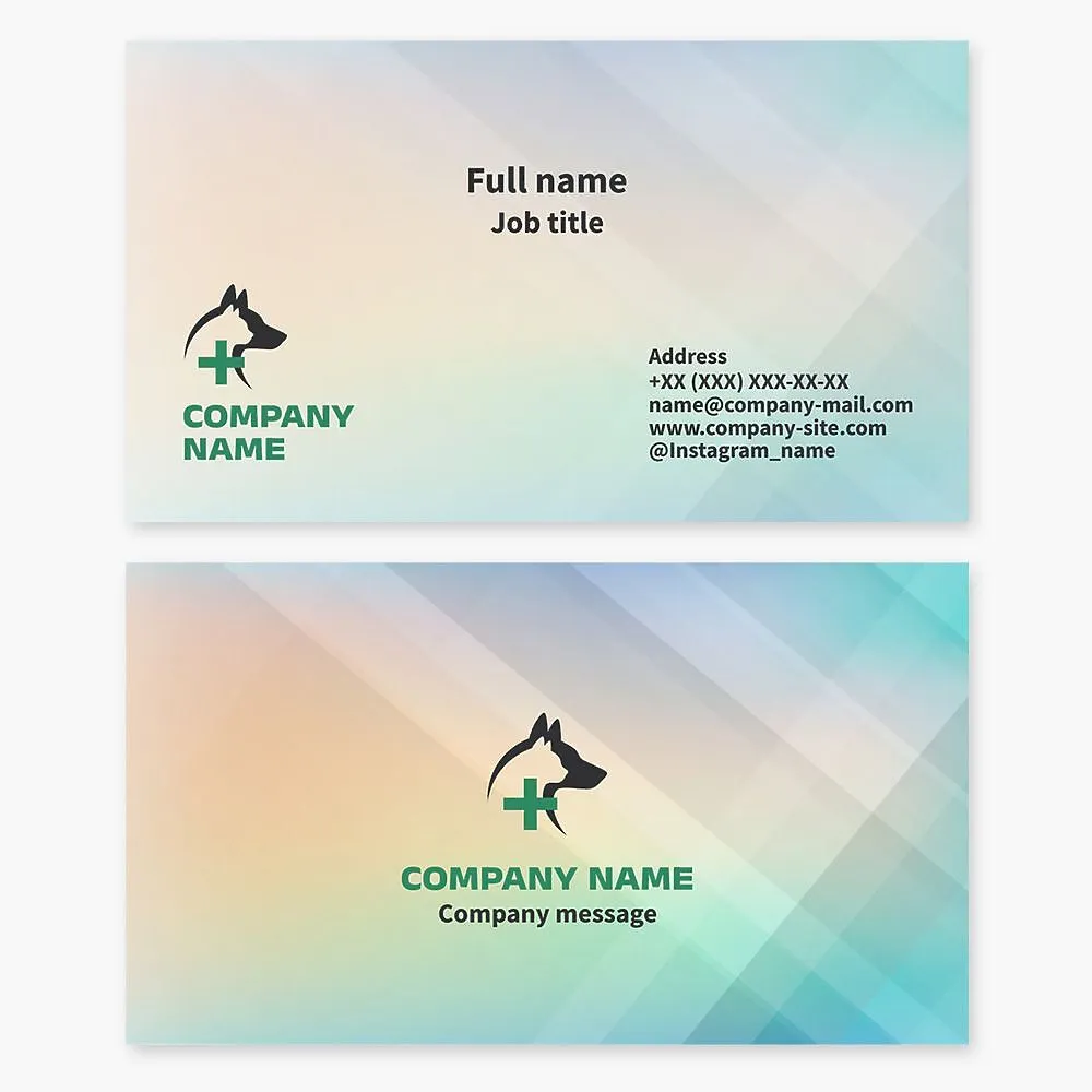 Veterinary clinic business card template. Cat, dog, green medical cross.