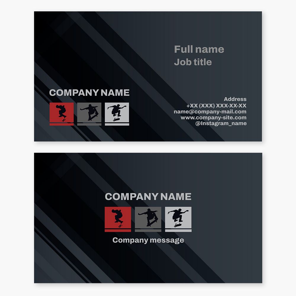 Business card template. Skateboarding: accessory shop, instructor, skate town.