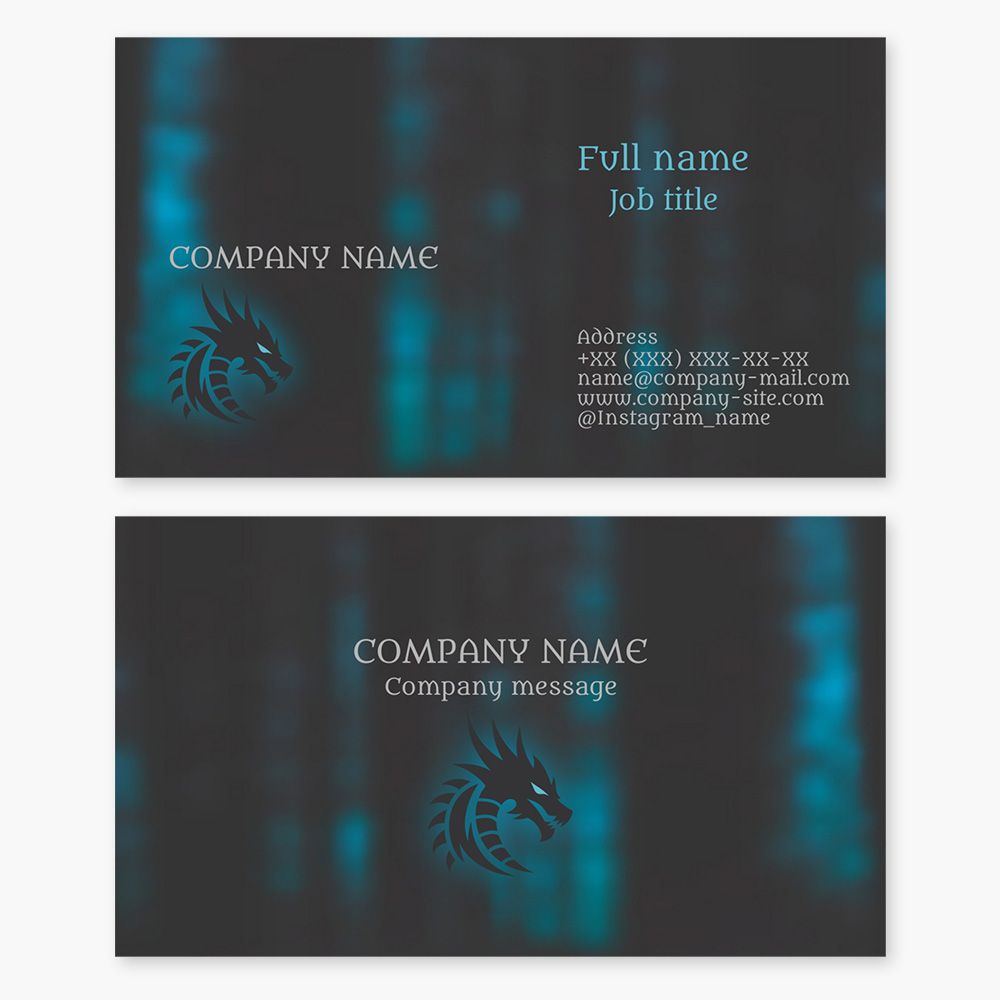 Business card template. Dragon. Abstract. Computer games: team, club, equipment and game sales.