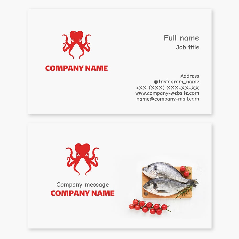 Business card template with a crab logo. Seafood store. Seafood catch and supply.