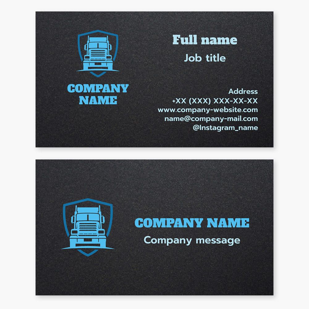 Shield, truck, insurance. Business card template