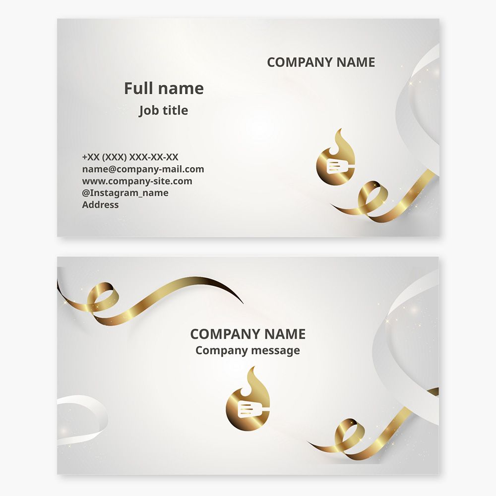 Business card template. Products for grilling, picnics, and outdoor activities and holidays. A recreation center with rental houses and amenities. Streamers, golden fire, and a kitchen spatula.