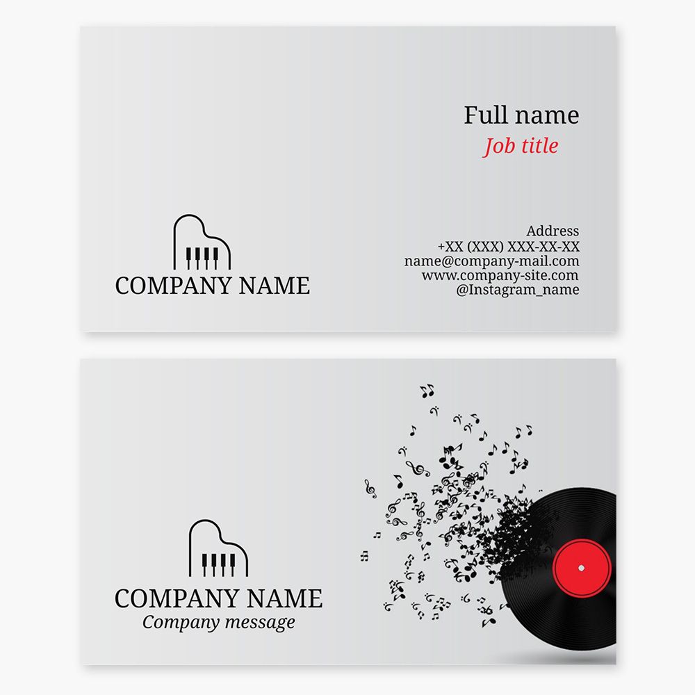 Business card template for piano, music