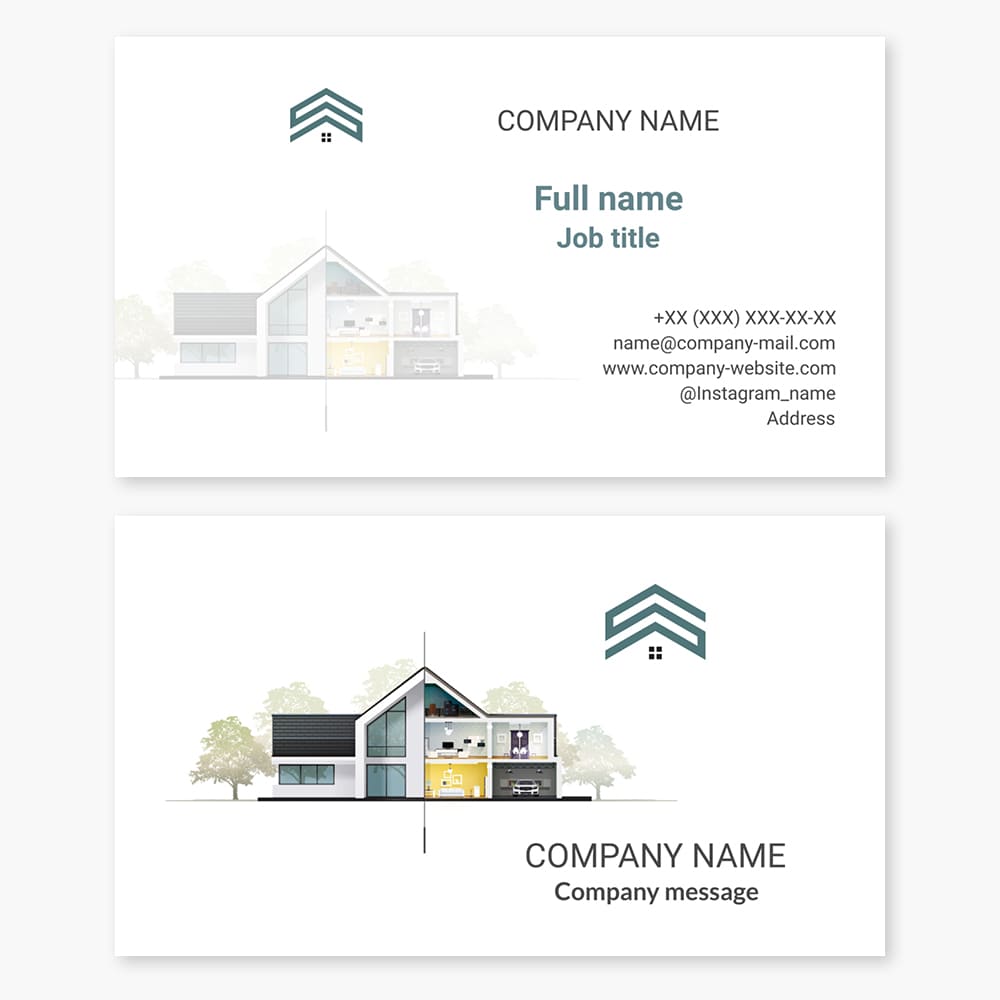 Business card template. Capital construction. Real estate. Realtor. Letter O.