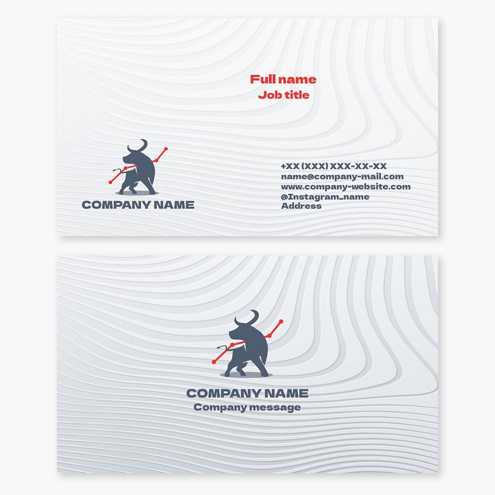 Business card template. Commodity and financial exchange. Broker. Wholesale market. Bull. Price dynamics chart.