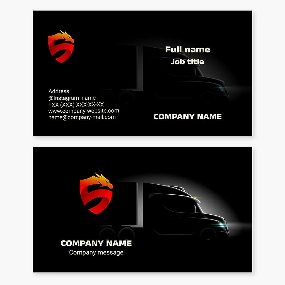 Business card template. Cargo transportation. Dragon. Letter C. Number 5.