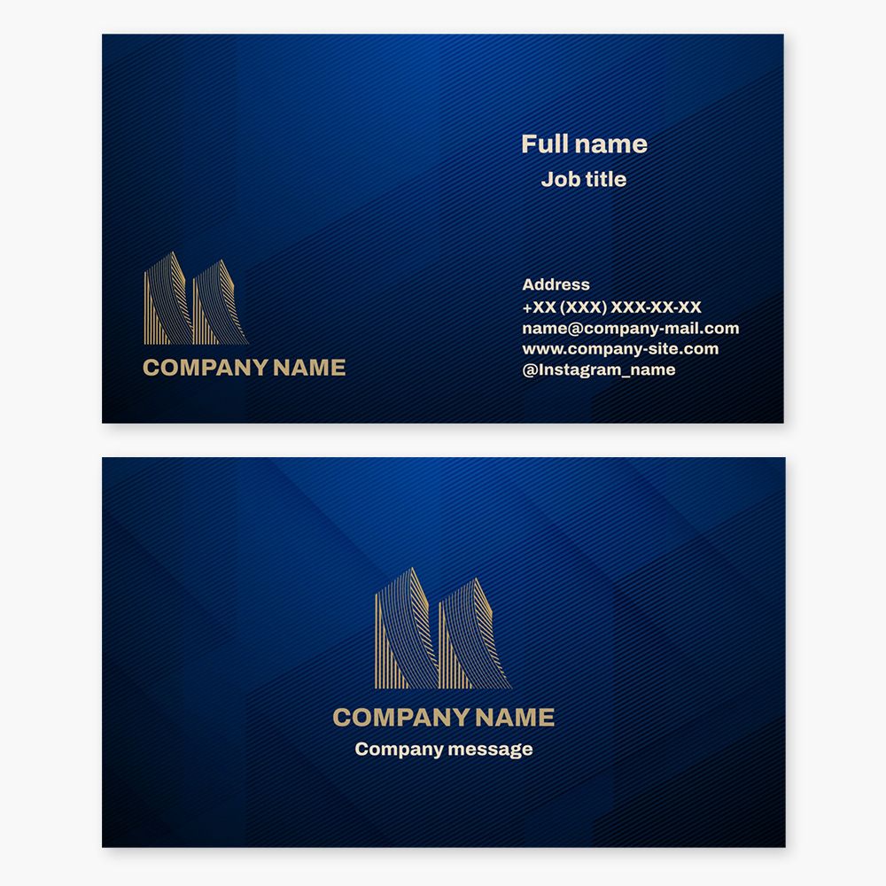 A universal blue business card template. Skyscrapers. Development. Construction company. Real estate agency.