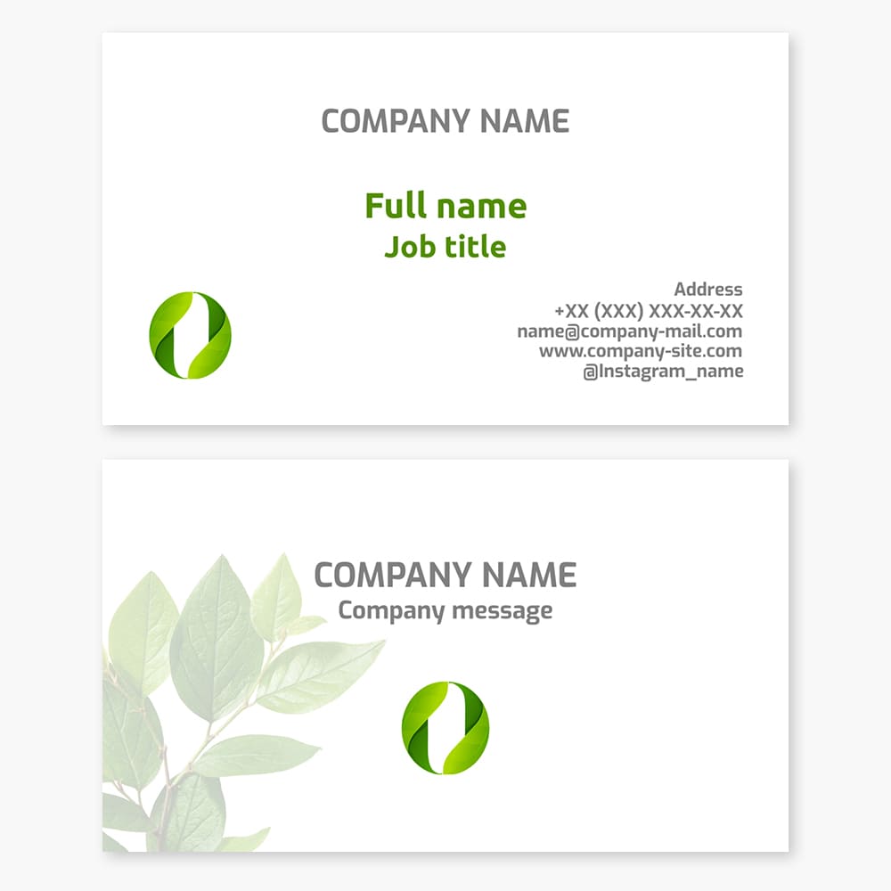 Business card template. Ecology. Landscaping. Growing seedlings. Letter O.