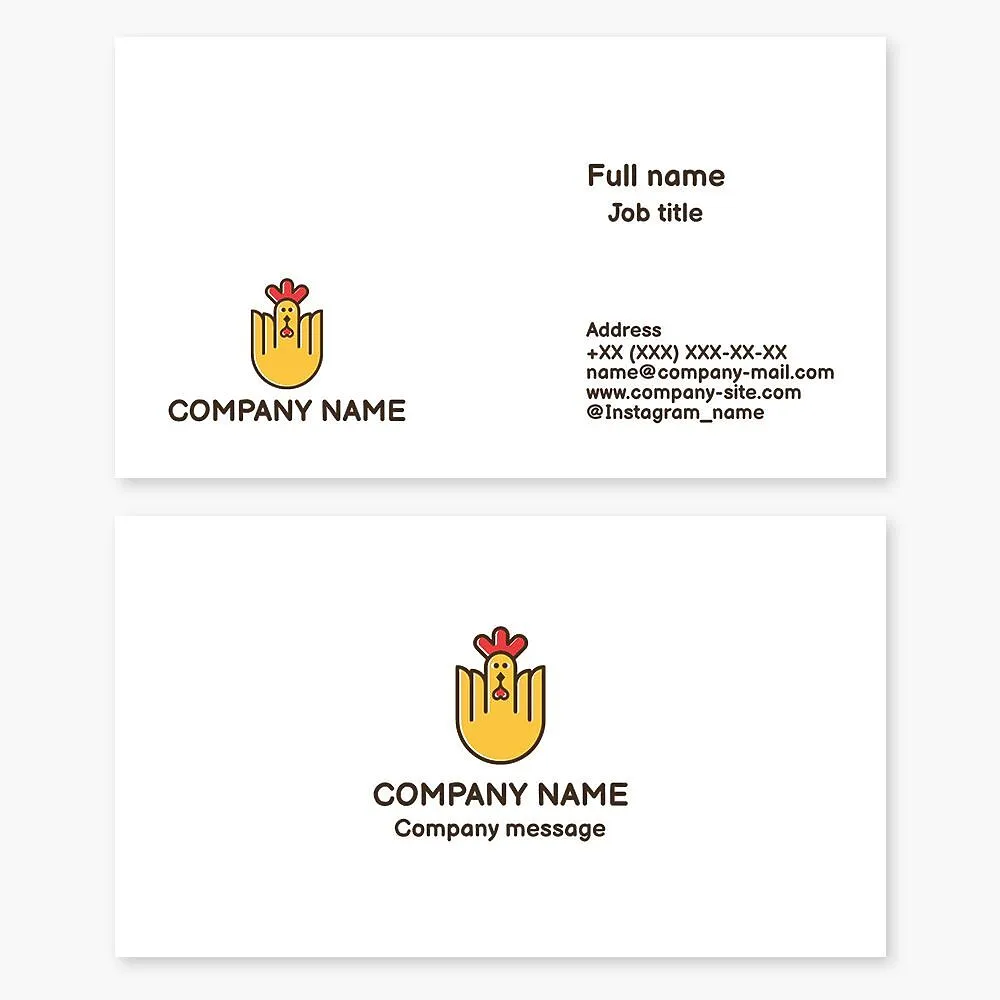 Business card template with chicken logo. Poultry farm. Broiler meat. Letter U.
