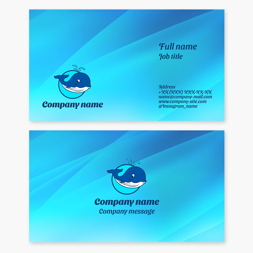 Business card template "Whale." Children's water park. Beach goods and services. Letter O.