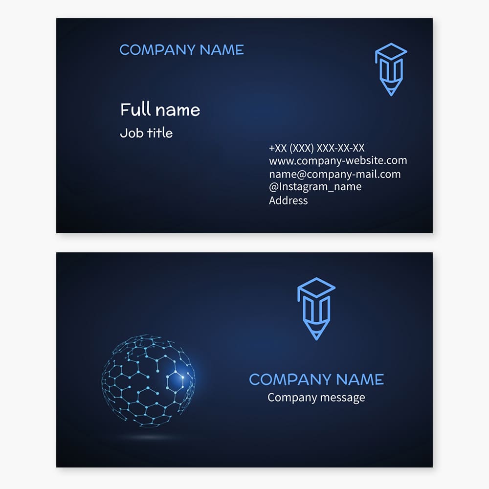 Business card template. Education, science, academic achievements, journalism, consulting, training.