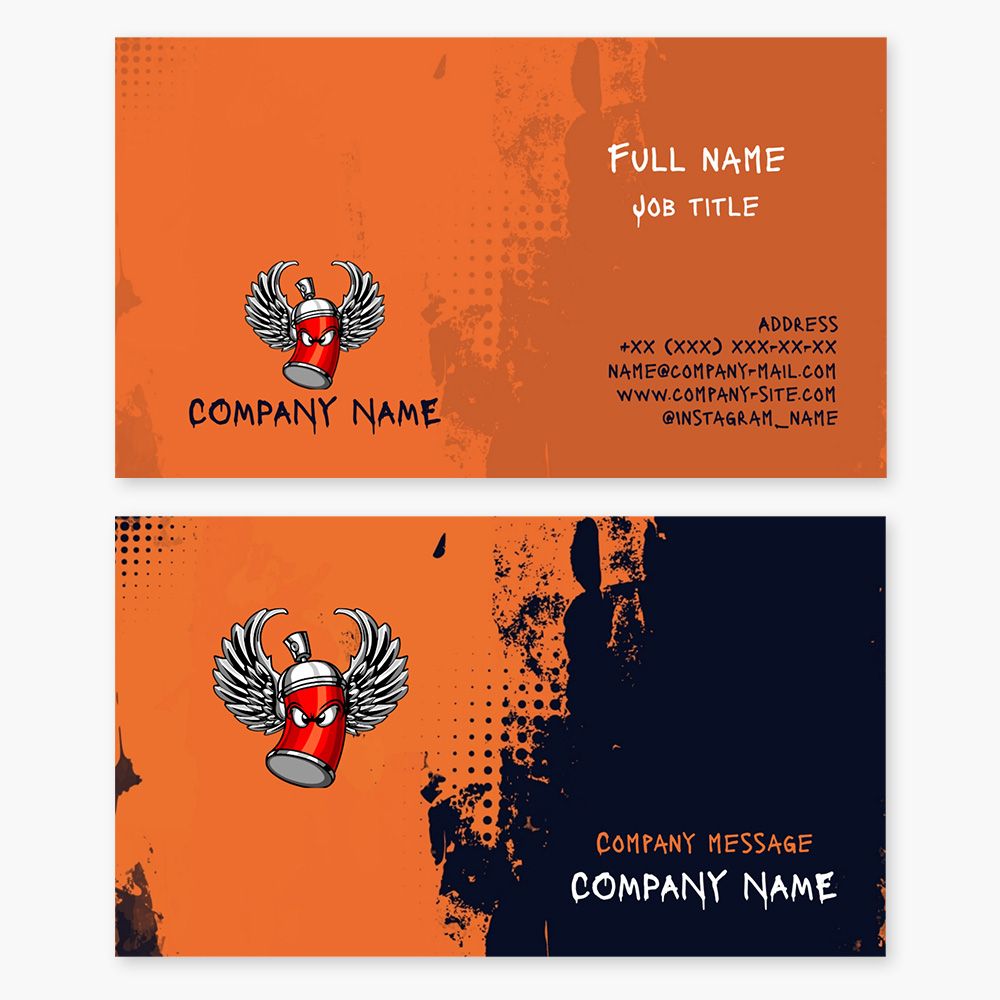 Spray paint business card template. Freelance street artist. Spray paint sales.