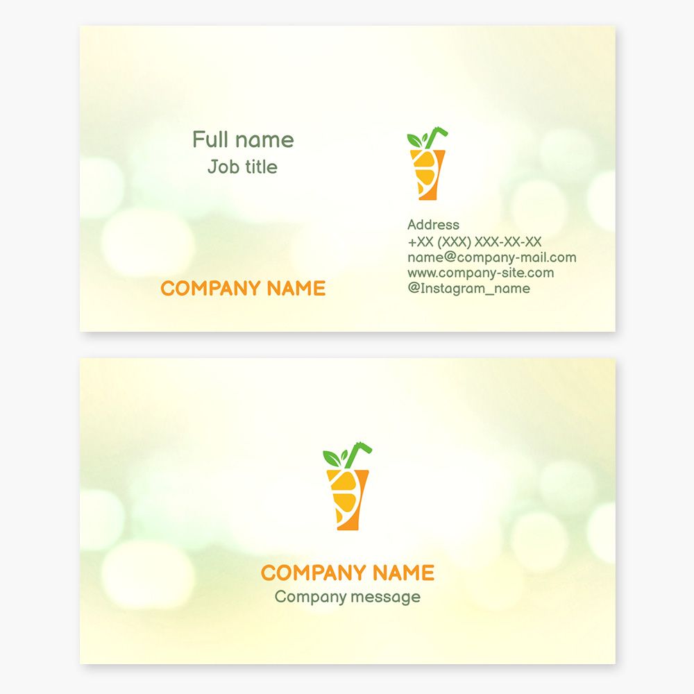 Orange juice business card template. Bokeh.