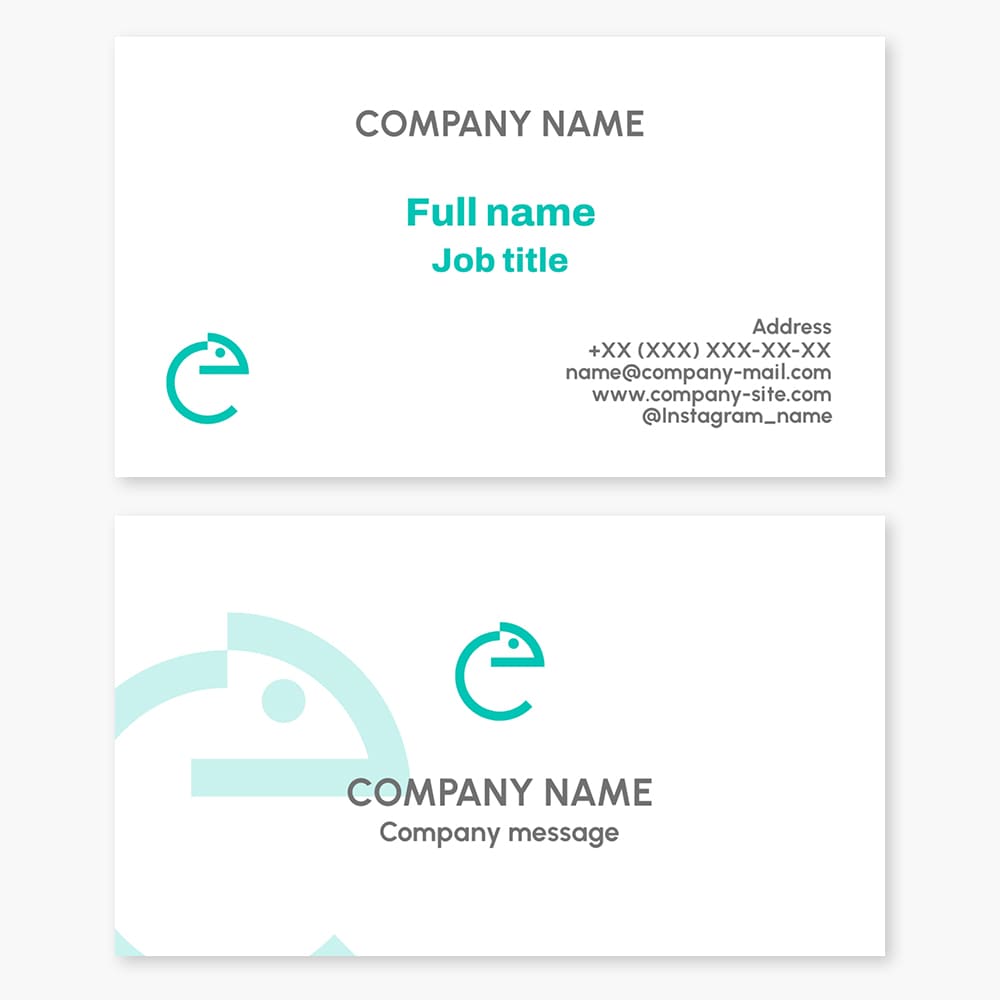 Business card template. Chameleon. Symbol of variability, adaptability, flexibility, patience, determination, and wisdom. Letter E.