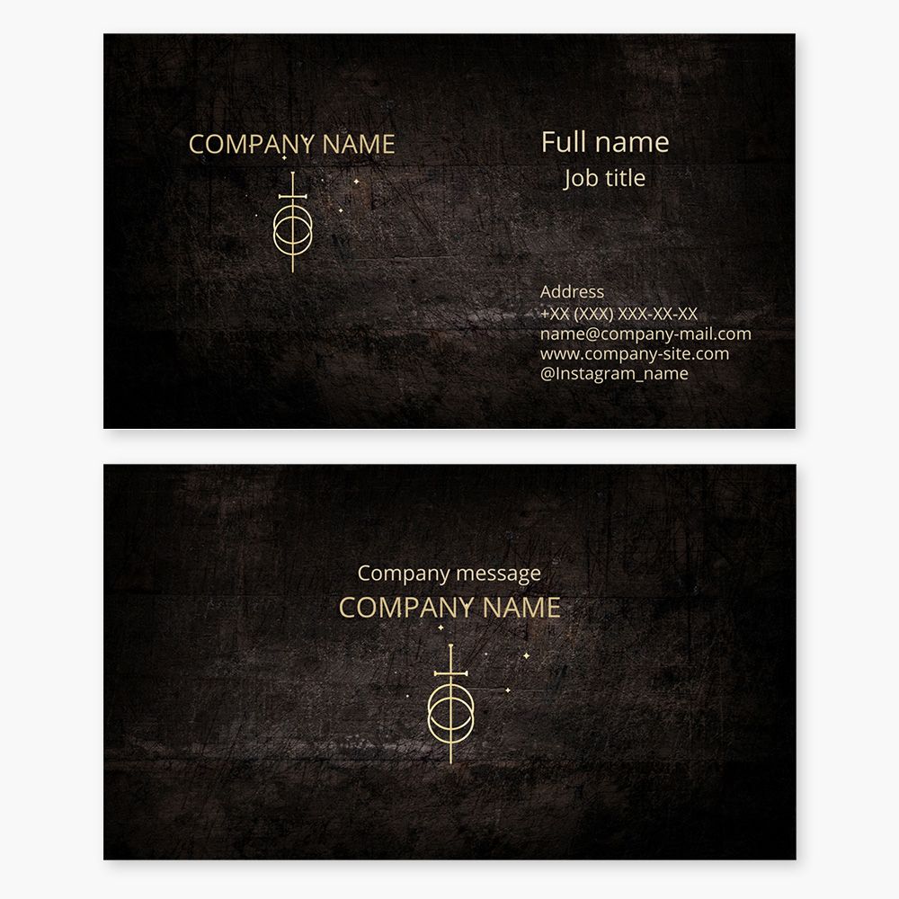 Dark brown business card template. Sword, celestial stars, letter O. Symbol of strength, power, justice, courage, and leadership. Security agency. Bodyguard.