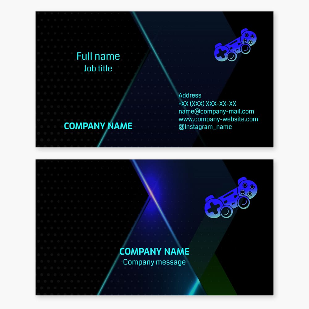 Business card template with a film logo. Film company. Event videography. Videographer, video editor. Film reel, record button, palm branch.
