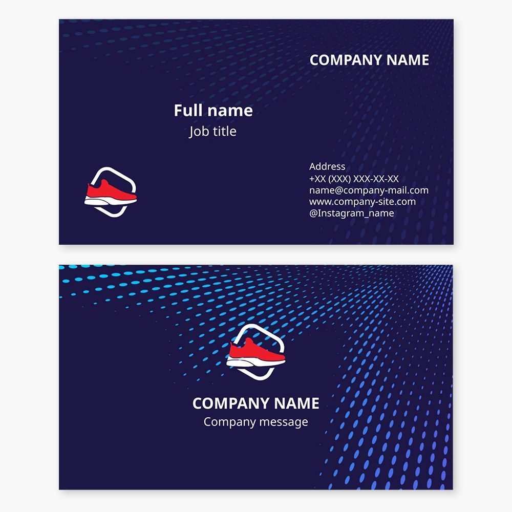 Business card template with a sports shoe logo. Sporting goods store. Sports club. Sneaker store.