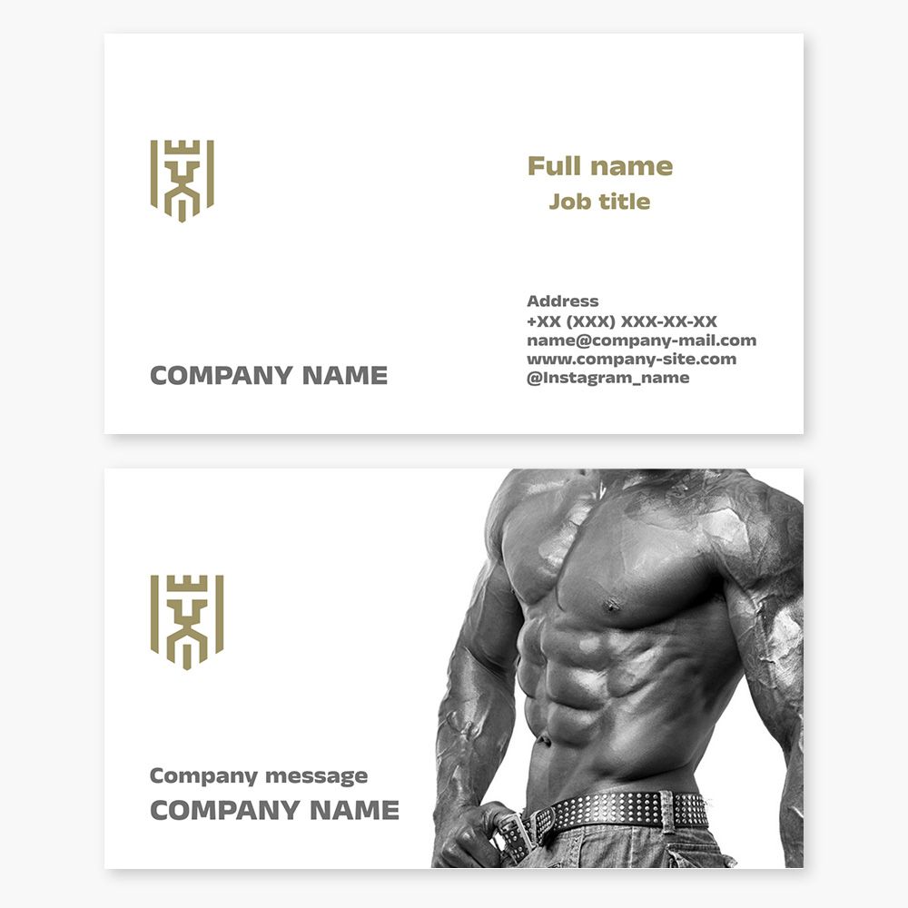 Male model business card template. Lion, shield, crown. Modeling agency. Bodybuilding. Fitness club.