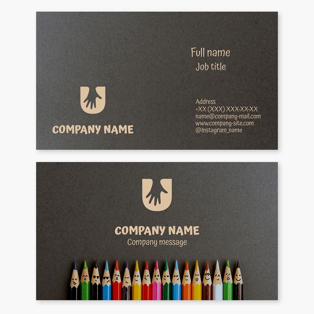 Business card template. Children's center. Care, support, humanity, and unity for children. Children's charity, psychological institution, insurance company, volunteer movement. Letter U.