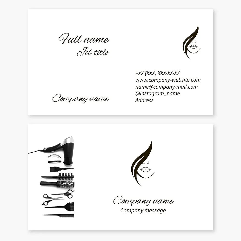 Business card template Hairdresser, beauty salon, haircuts, hair styling, tools and materials for hairdressing