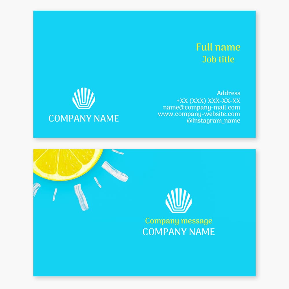 Business card template. Sun-lemon, shell. Resort. Marine hotel.