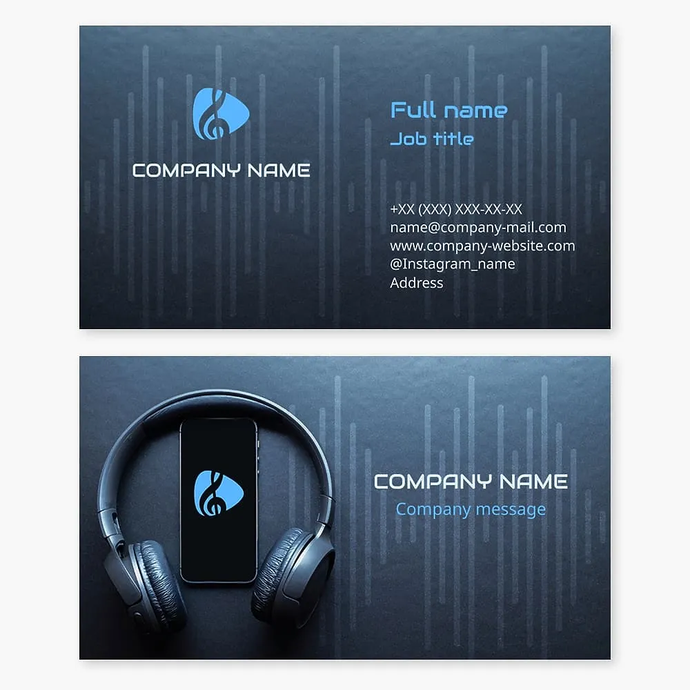 Microphone and Headphones with Skull | Music Business Card Template | Vocalist | Rock | Heavy Metal | Recording Studio