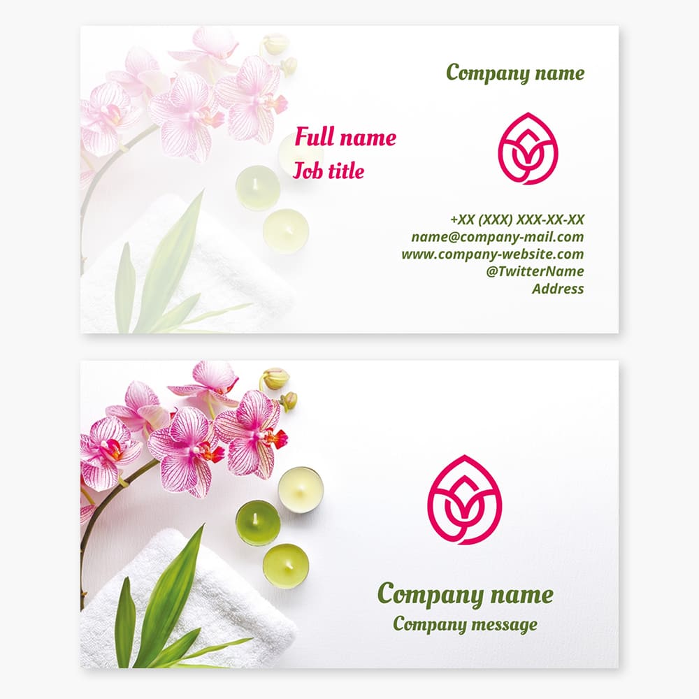 Business card template “Stacked stones and flowers. SPA services. SPA salon.”