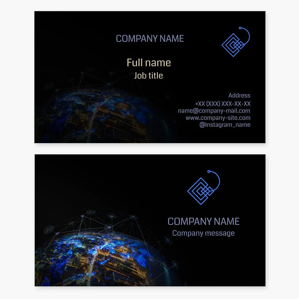 Business card template. Cybersecurity, network protection and digital technologies, secure and confidential data transfer, VPN service, secure communication channels.