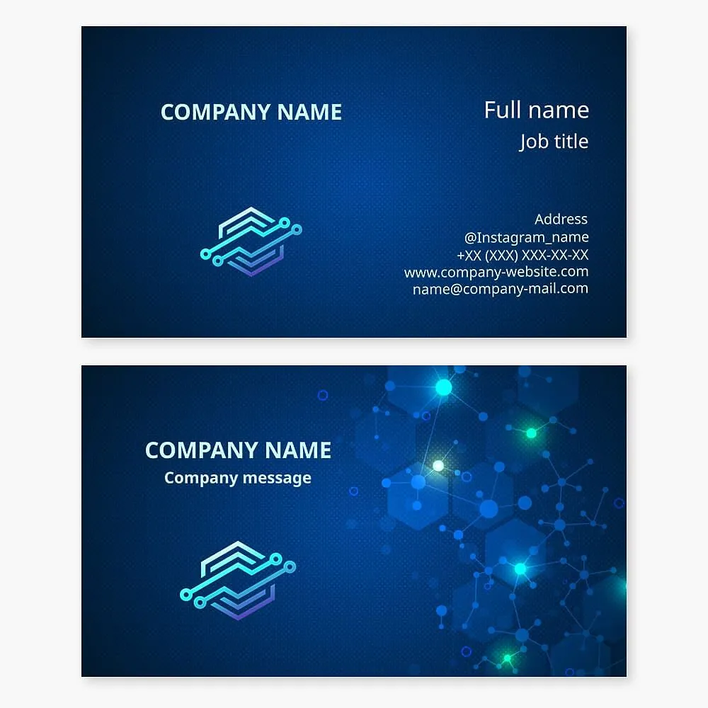 Hexagon Tech Business Card Template. Information Technology. Electronic Devices and Gadgets.
