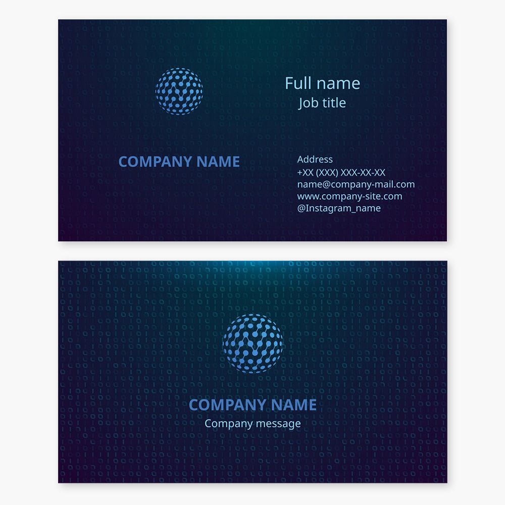Business card template. Progress, innovation, development, and growth. Technology and the future. Teamwork and unity. Education and training.