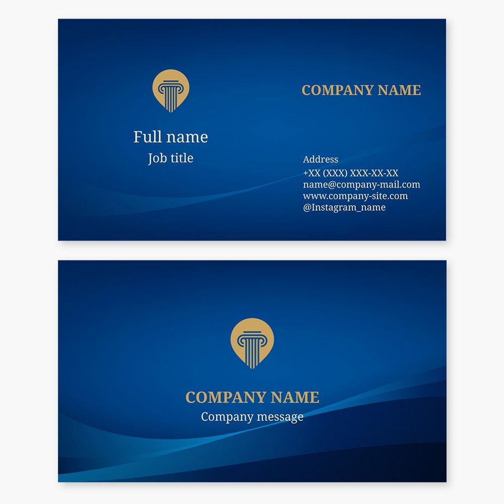 Business card template with the Pillar logo. Roman column capital. Location icon. Law firm. Attorney, lawyer.