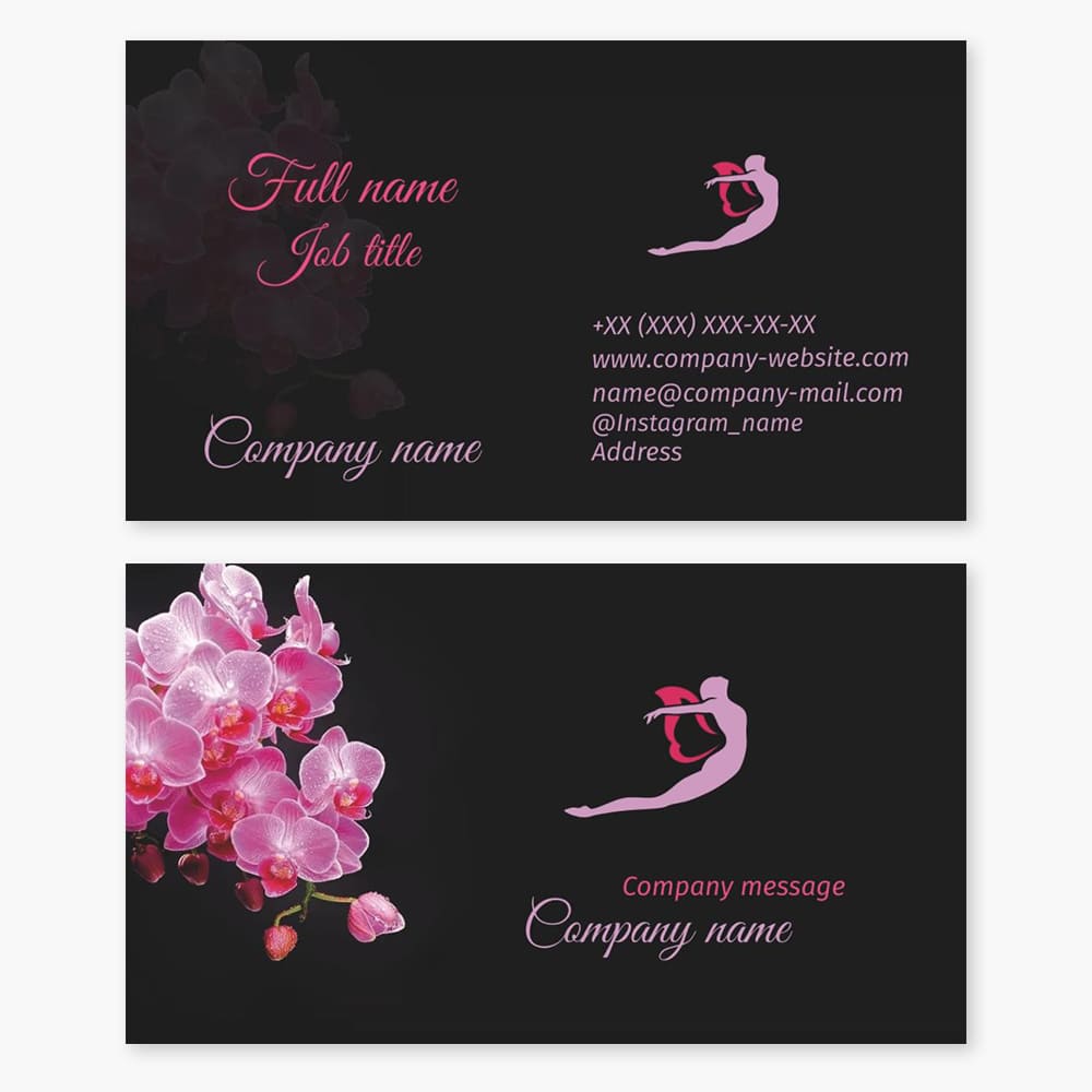 Business card template Dance studio, pilates, poetry, rhythmic gymnastics, choreography, butterfly woman