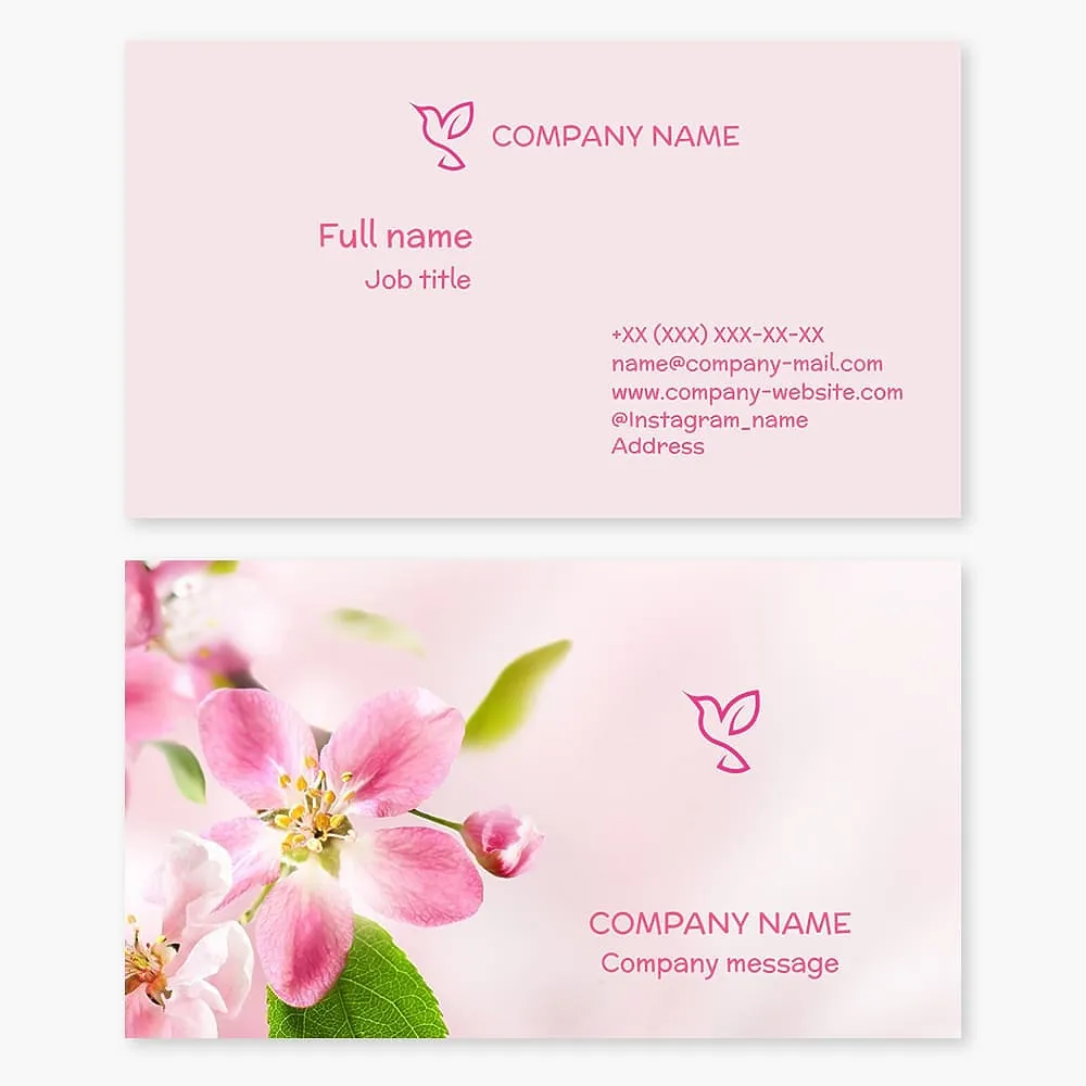 A business card template featuring a delicate floral wreath. A bird. A symbol of freedom, spirituality, and soul.