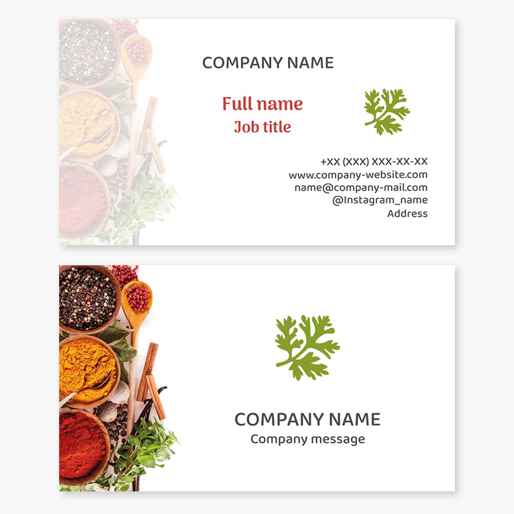 Spice and Condiment, Seasonings, Spices Business Card Template