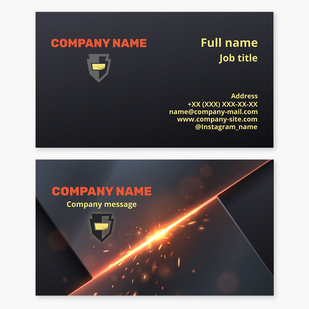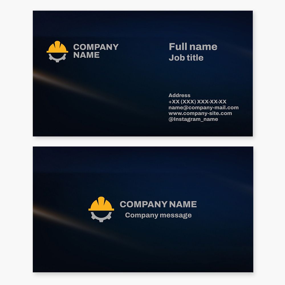 Business card template. Gear, protective construction helmet. Mechanical engineering company. Equipment manufacturing.