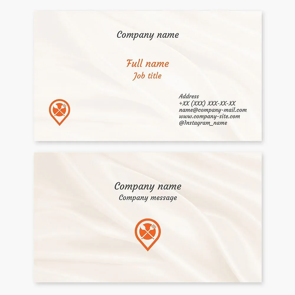 Spoon, fork, location icon, white cloth | Business card template for a cafe, restaurant, catering agency, or cutlery store