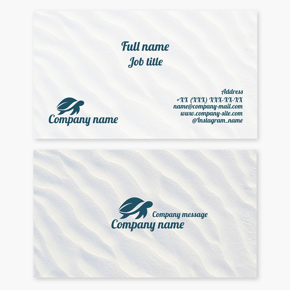 Business card template. Beach goods and services. Turtle, sand.