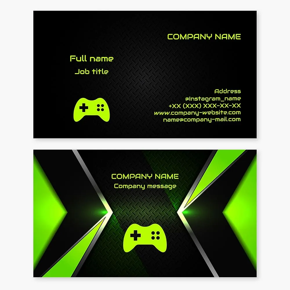 Business card template. Repair and sale of game consoles. Club of computer game lovers.