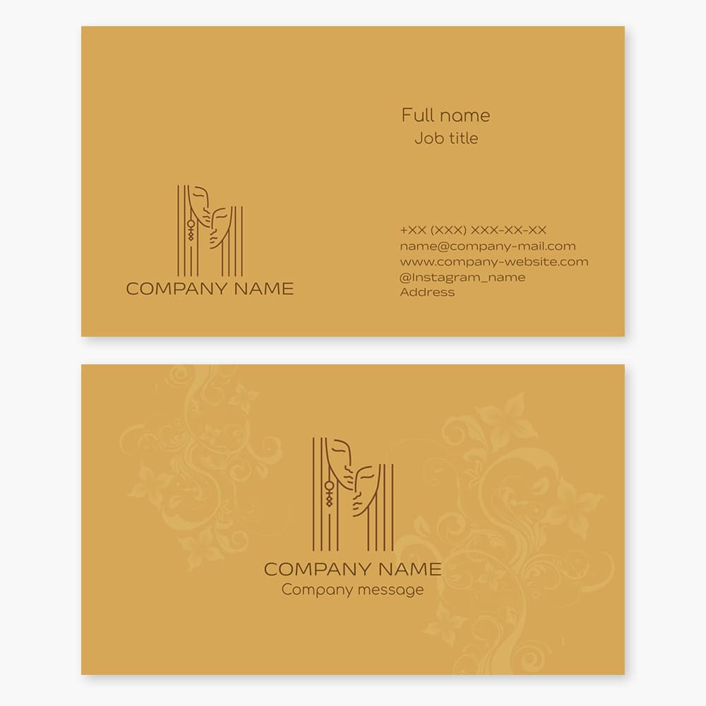 Business card template. Art gallery. Artist, portrait painter, sculptor, applied art. Two female faces. Letter M.