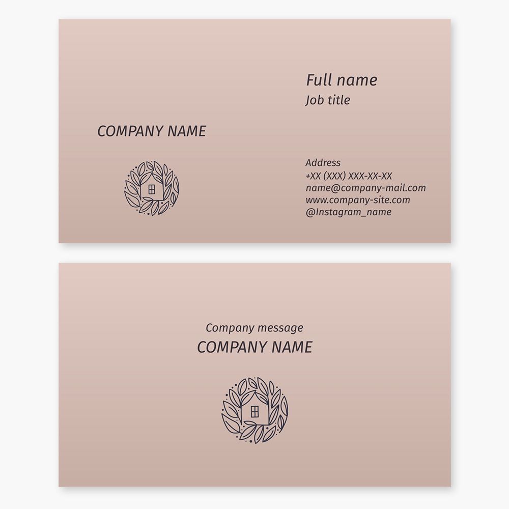 Business card template with the House Leaf logo. Green building. Yard landscaping. Construction company.